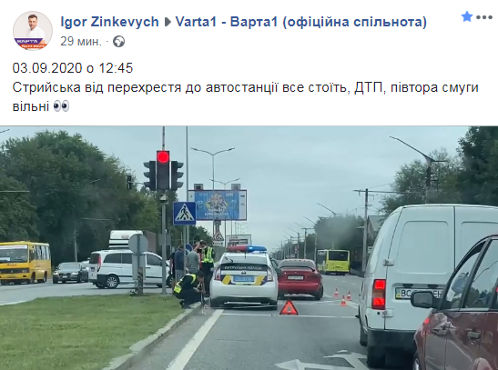 У Львові внаслідок ДТП, яке сталася сьогодні 3 вересня, паралізовано рух транспорту на вулиці Стрийській.