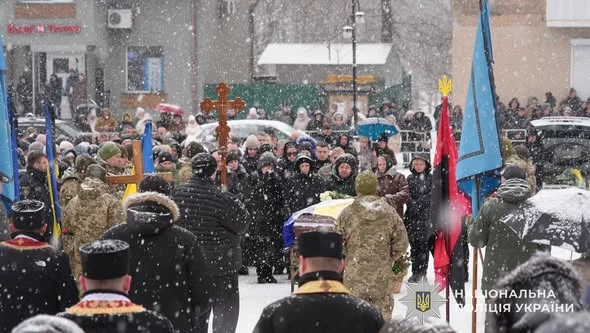 Панахида за правоохоронцем відбулася 15 лютого у його рідному місті Стебнику. Захисника України поховали на місцевому кладовищі з військовими почестями.