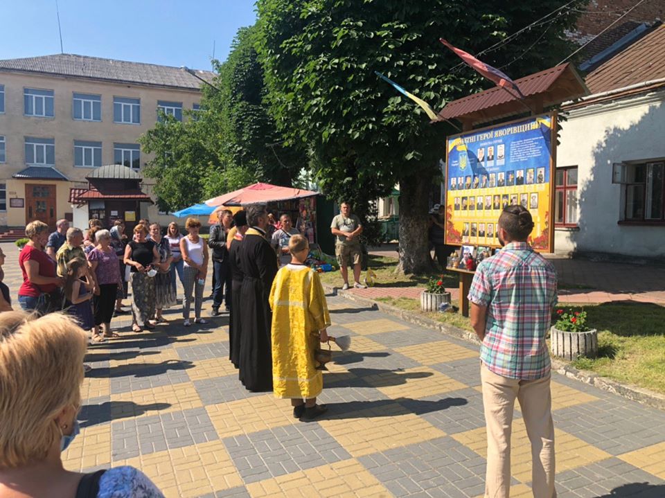 “Сьогодні, в центральній частині нашого містечка, відбулась спільна молитва за упокій Героїв України, які загинули біля Зеленопілля 11 липня 2014 року”, – йдеться у дописі.