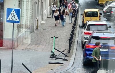 У центрі Львова автомобіль вилетів на тротуар