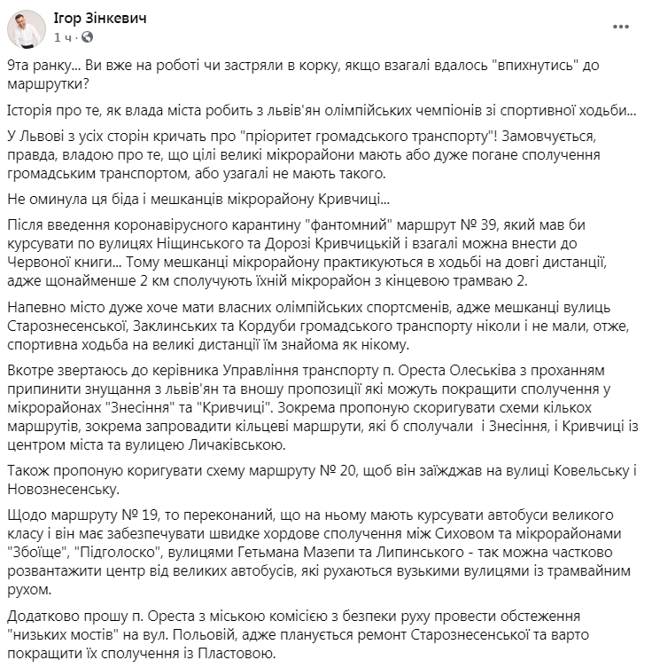 - Скриншот ФБ/Ігор Зінкевич