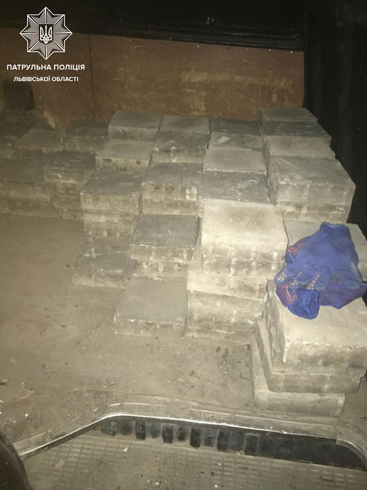 У Львові патрульні затримали на гарячому осіб, які вантажили чужу тротуарну плитку в свій автомобіль.